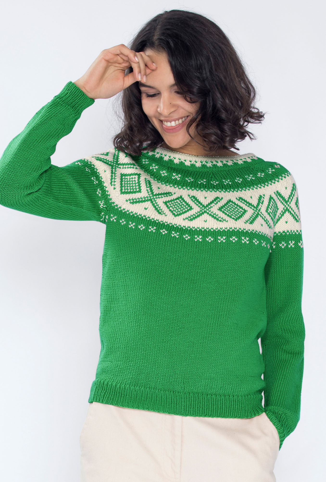 22 m glattstrikk og mønster på p nr 4 = 10 cm