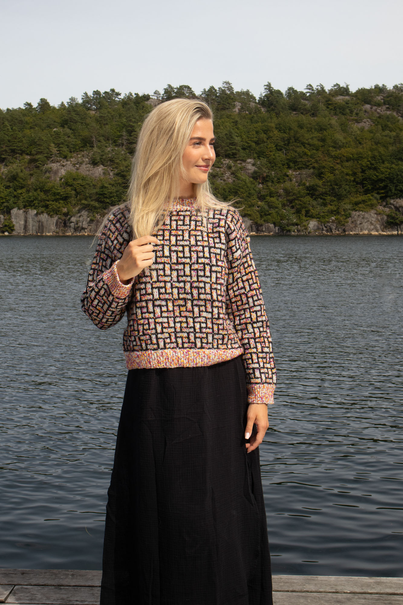 20 m glattstrikk og mønster på p nr 4,5 = 10 cm