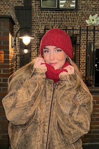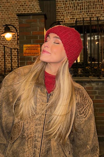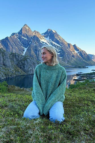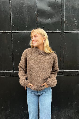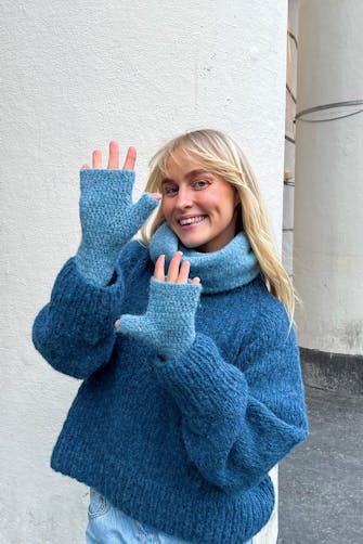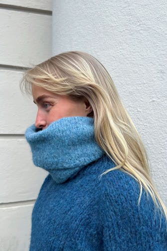 12 m x 16 p/omganger glattstrikk med dobbelt garn på p nr 7 = 10 x 10 cm