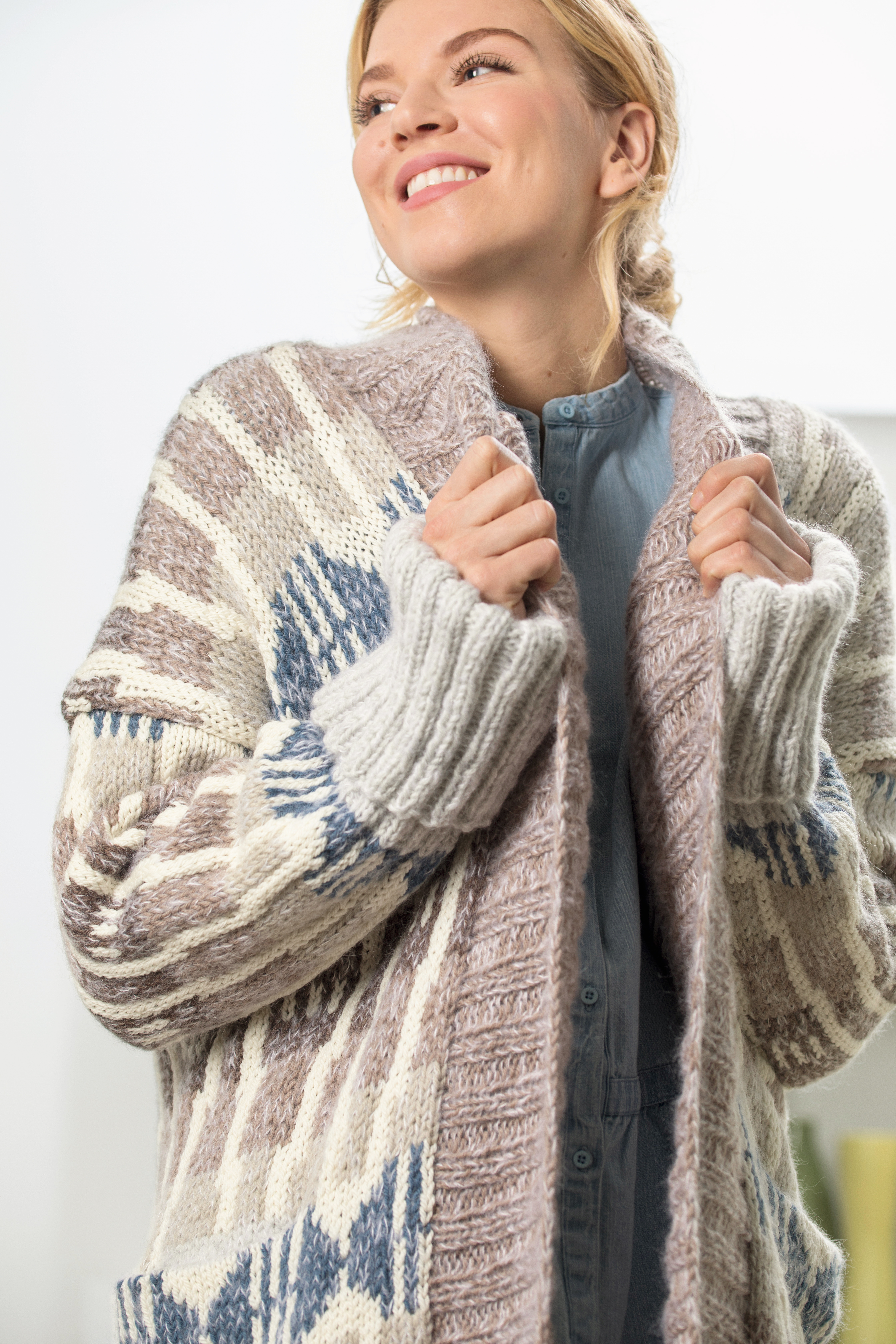 - Strikkefasthet15 m glattstrikket mønster på p nr 6 med 1 tråd hver av NATURAL LANOLIN WOOL og KIDSILK ERLE eller 2 tråder BABY ULL = 10 cm