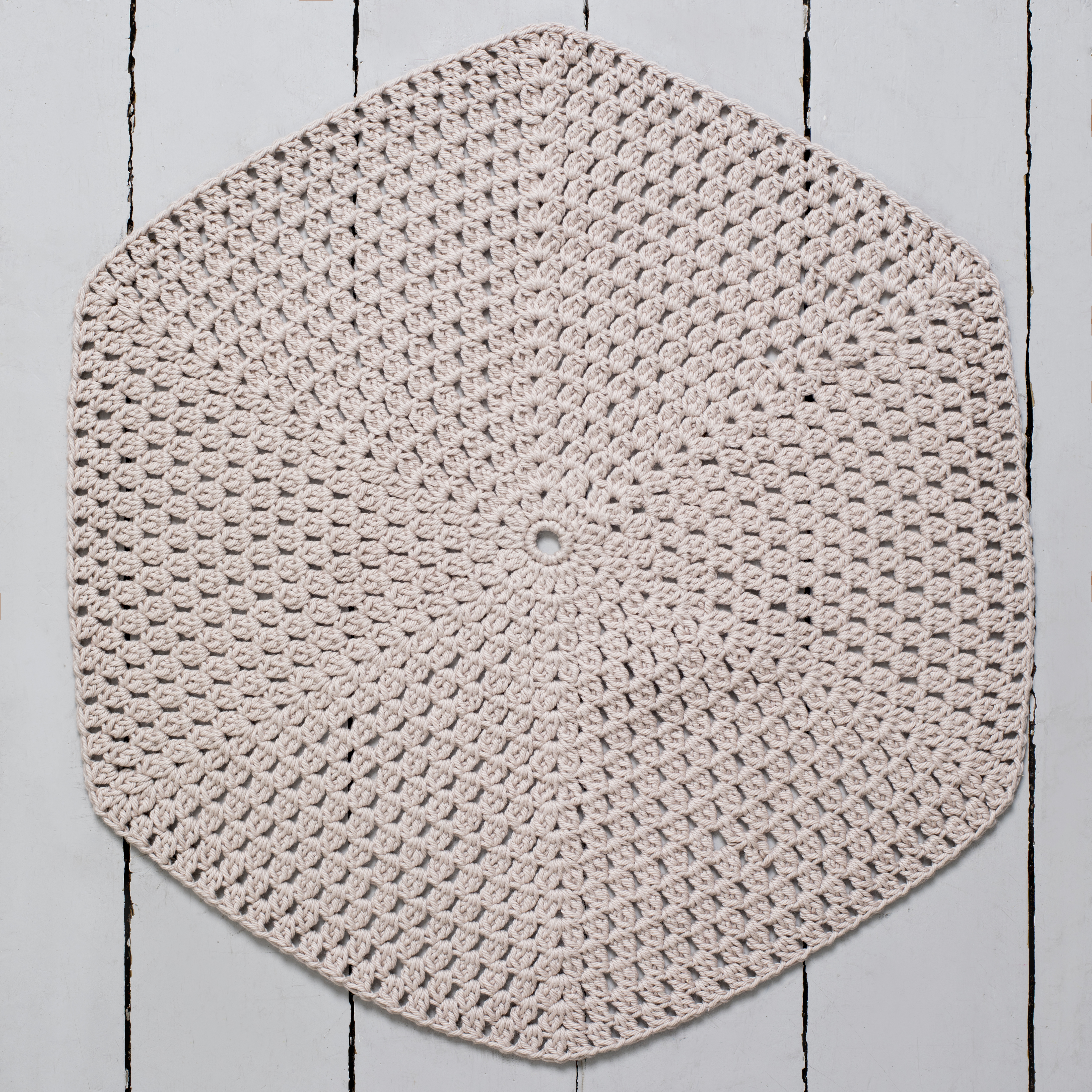 14 stavgrupper på heklenål nr 3,5 = 10 cm