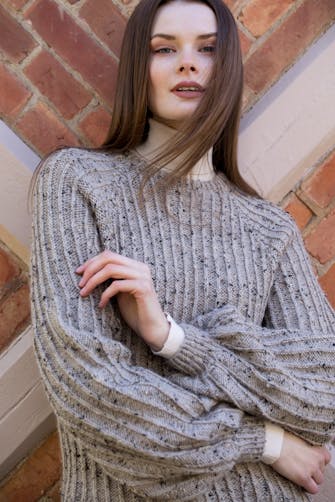 - Strikkefasthet13 m mønster med 1 tråd Tweed og 2 tråder Faerytale på p nr 7 = 10 cm