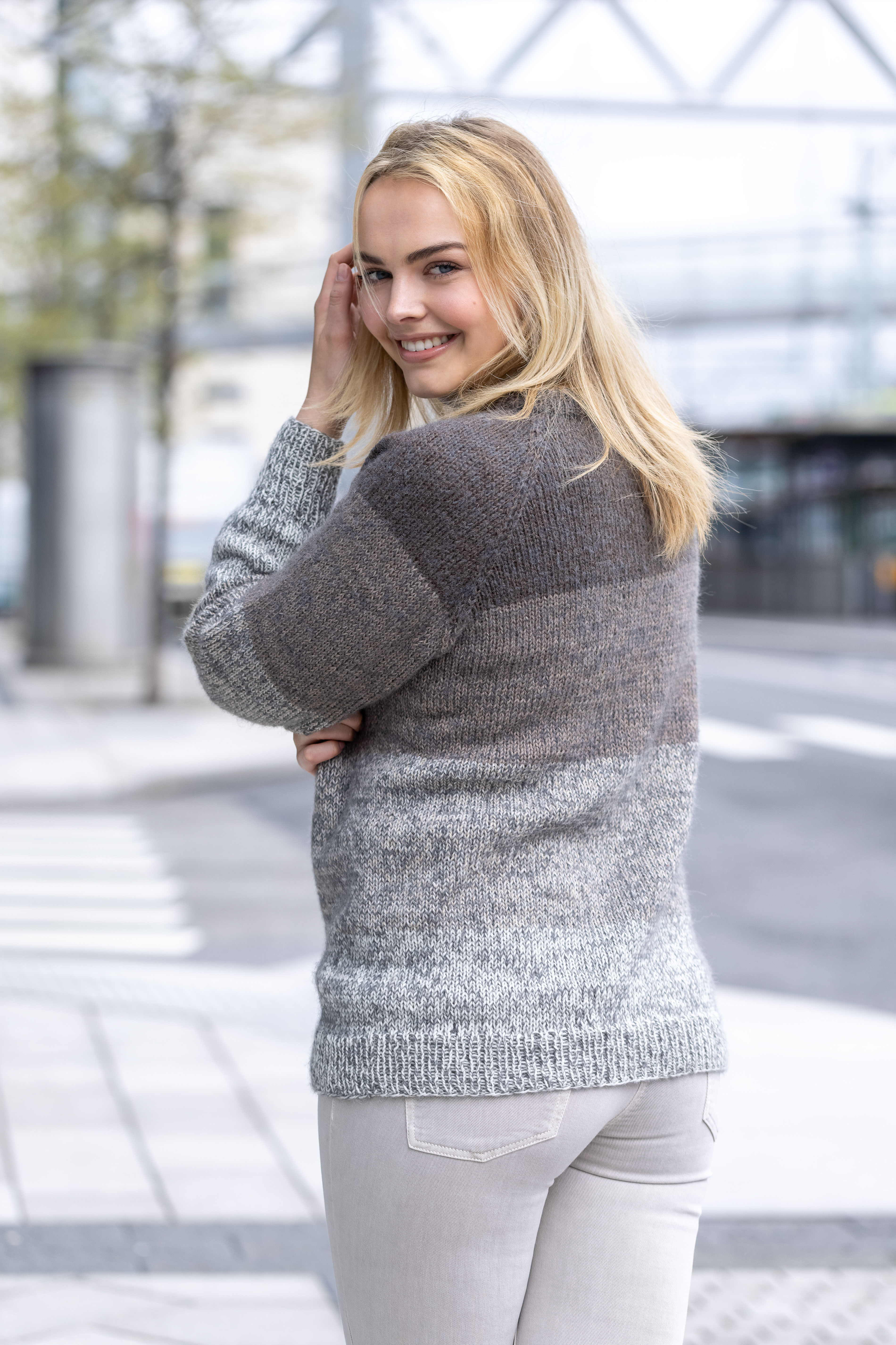 - Strikkefasthet17 m x 24 omganger glattstrikk med 1 tråd av hver kvalitet på p nr 5 = 10 x 10 cm