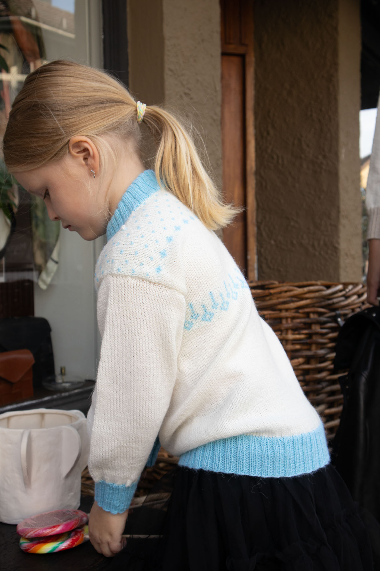 27 m og 32 omganger/p glattstrikk og mønster på p nr 3 = 10 x 10 cm